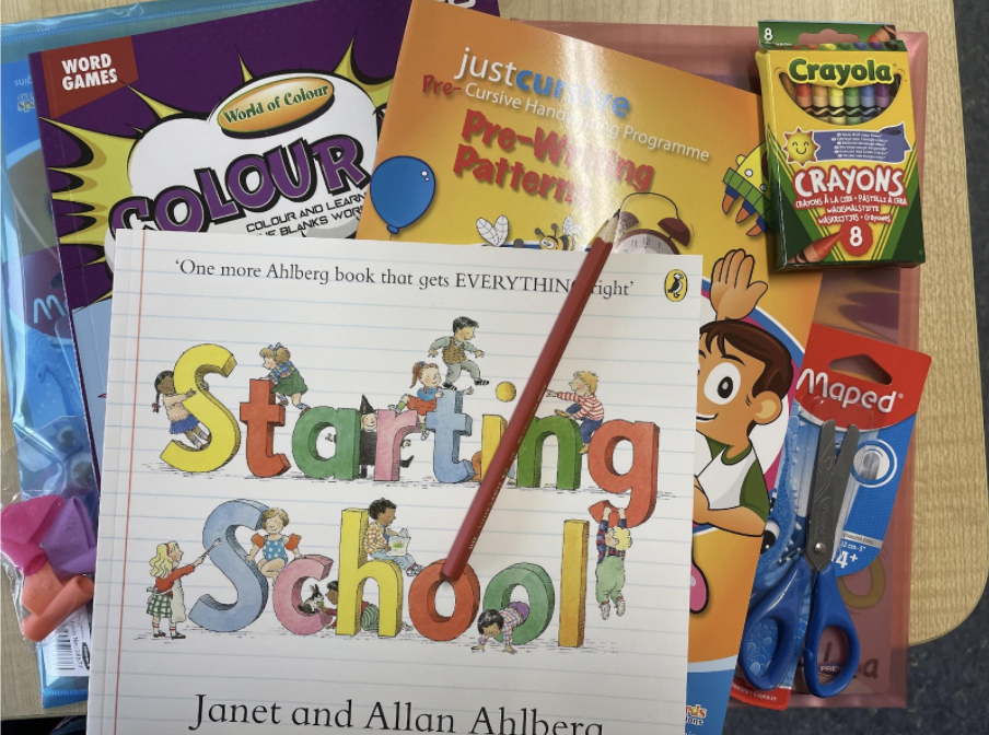 The packs included a picture book with a story about starting school, colouring and pattern workbooks to encourage fine motor skills, scissors, crayons, pencils, and lots more!