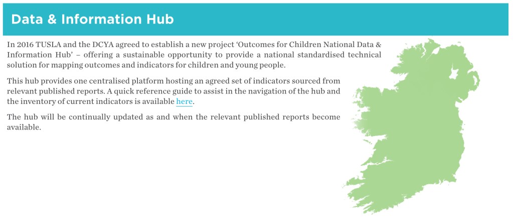 Tusla’s Data and Information Hub provides one centralised platform hosting an agreed set of indicators sourced from relevant published reports: